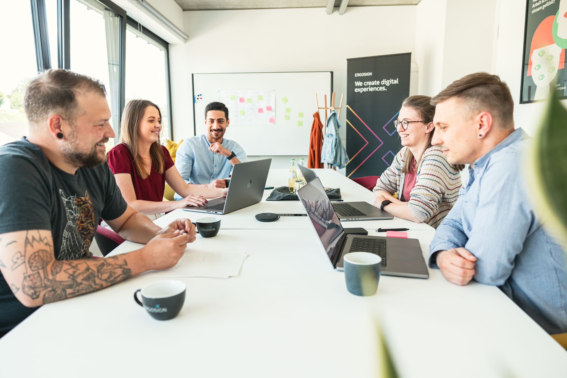 Damit Projekte gar nicht erst in diese Situation rutschen, haben wir bei Ergosign den KI-Kompass entwickelt. Bevor wir mit einem Kunden in die Ideation eines KI-Projekts einsteigen, setzen wir uns in einer kleinen Runde zu einem strategischen Gespräch mit ihm zusammen.